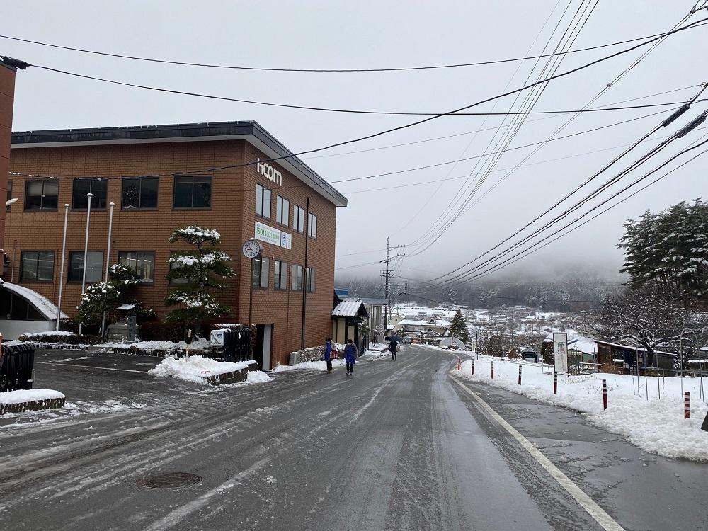 当社(長野本社)周辺は、今朝(22日)数センチ程度の降雪がありました。現在は時折小雨が降っており、道路はシャーベット状態になっています。