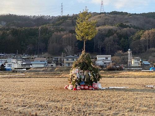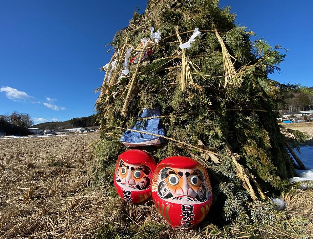 いわゆる「どんど焼き・左義長・塞の神」です。 松本周辺では「三九郎(さんくろう)」と言います。当社のダルマも(東京の分も)焚き上げていただきます。