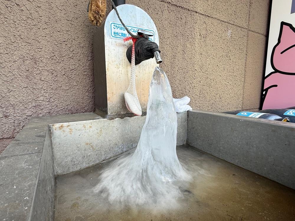 蛇口からポタポタ落ちた水で、いつのまにやらニョキニョキと氷筍が・・